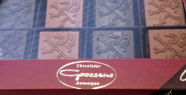 Een ander voorbeeld van personalisatie door Chocolatier Goossens. Het logo van de Vlaamse gemeenschap ziet er zeker lekkerder uit op schocolade dan op uw belastingsbrief.